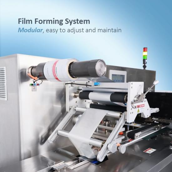เครื่องพันฟิล์มแบบไหลเป็นอุปกรณ์เครื่องกลที่ใช้ห่อผลิตภัณฑ์ในฟิล์มพลาสติกสำเร็จรูปหรือฟิล์มคอมโพสิต แล้วปิดผนึก เครื่องพันฟิล์มแบบไหลสามารถทำงานได้อย่างต่อเนื่องด้วยความเร็วสูง และสามารถป้อนวัสดุบรรจุภัณฑ์ ขึ้นรูปฟิล์ม ปล่อยผลิตภัณฑ์ ปิดผนึกหลายด้าน ตัดและนำฟิล์มด้านหน้าและด้านหลังออกได้โดยอัตโนมัติ