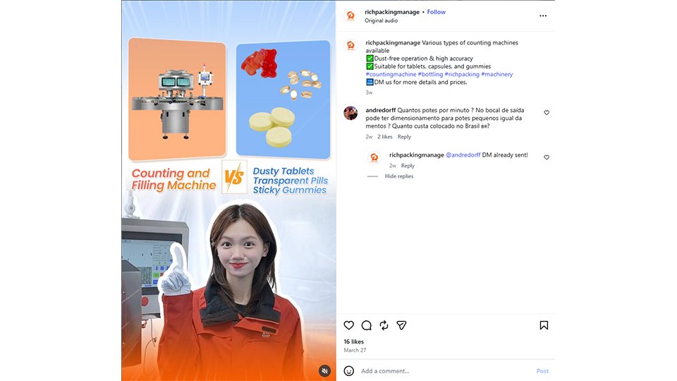 Recently, Rich Packing welcomed Echo, a product manager from a leading health supplement manufacturer in Malaysia, for an on-site inspection of its capsule counting line.