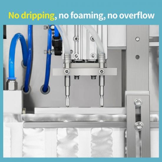 ใส่หัวบรรจุเข้าไปในปากขวด (หรือใช้หัวบรรจุแบบไม่สัมผัสเพื่อป้องกันการปนเปื้อน) และฉีดสารตามปริมาณที่กำหนดไว้ เซ็นเซอร์ระดับของเหลวจะตรวจสอบปริมาณการบรรจุแบบเรียลไทม์ และระบบจะหยุดทำงานและปรับทันทีหากเกิดความผิดปกติ การปิดผนึกและการบ่ม: